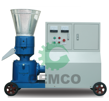電動機16通過齒輪箱2驅動主(zhǔ)軸,主軸帶動磨盤11轉動,壓(yā)輥8繞壓輥軸(zhóu)旋轉主軸轉動的同時帶動壓輥自轉。生物質原料被(bèi)送入平模機的喂料室,物料均落(luò)在平(píng)模上。主軸帶動磨盤轉(zhuǎn)動,壓輥連續不斷地滾過料層,將(jiāng)物料擠(jǐ)壓(yā)進入模孔,物料在模孔中經曆成型(xíng)、保型等過程,一定時間後以圓柱狀態被擠出,切刀將物(wù)料切斷,形成顆粒,甩料盤將(jiāng)顆粒送出。